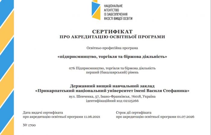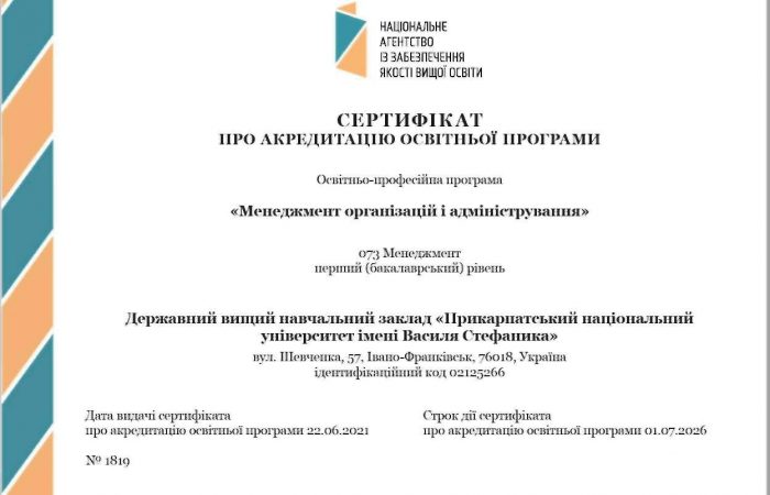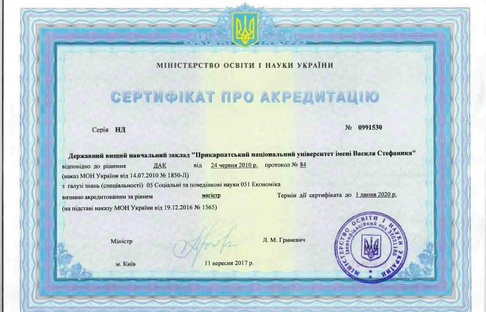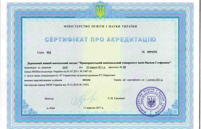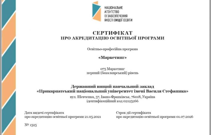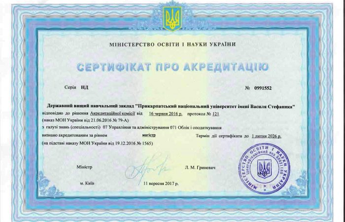 Акредитація/Ліцензування Сертифікати освітнього рівня “Бакалавр” Сертифікати освітнього рівня “Магістр”