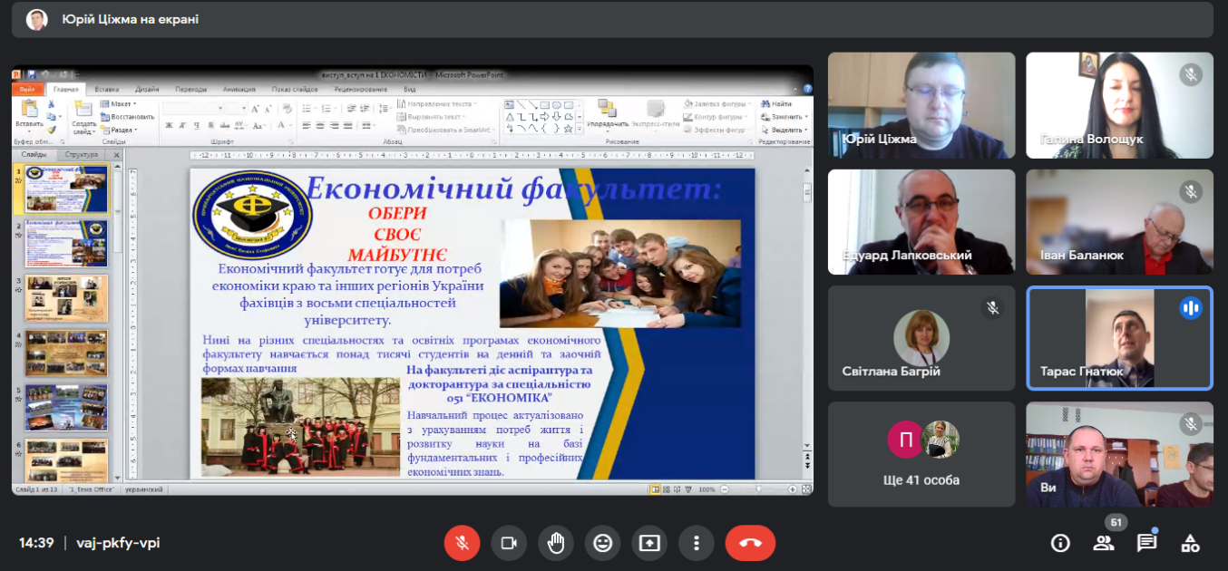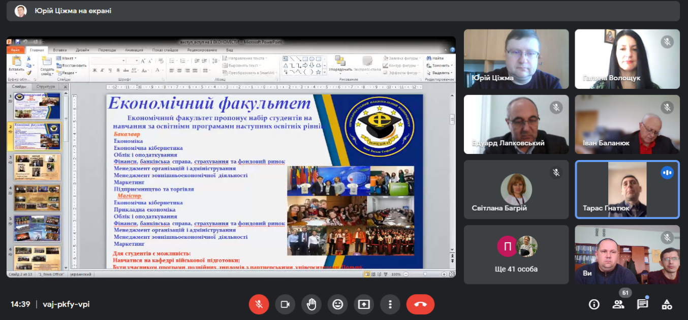 Представники від кожної кафедри економічного факультету презентували свої спеціальності та освітні програми, проінформуваши школярів про особливості навчання та можливості подальшого працевлаштування.