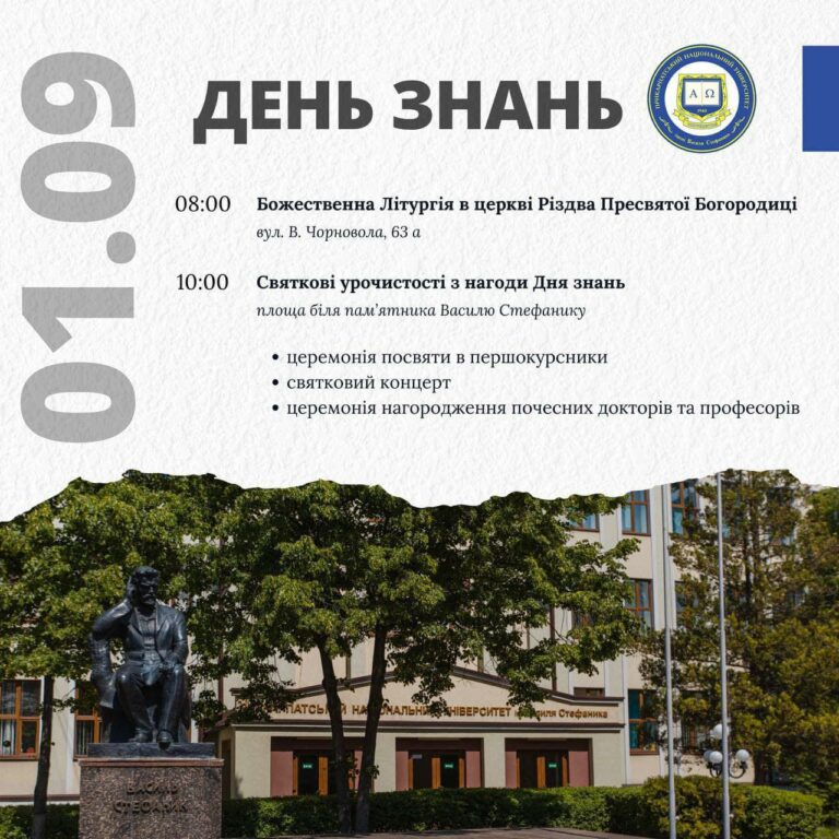 Дорогий першокурснику! Вітаємо Тебе в родині Прикарпатського національного університету імені Василя Стефаника! Ми раді, що Ти обрав саме наш університет для свого навчання. Попереду на Тебе чекають не лише знання та нові навички, але й незабутні студентські роки, наповнені цікавими Читати далі