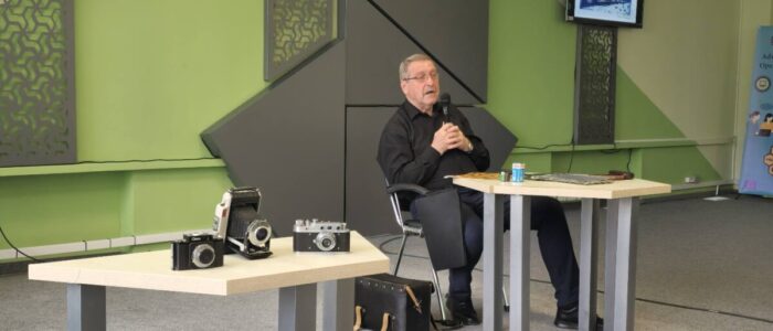 Спікером заходу виступив фотохудожник, член Національна спілка фотохудожників України — Микола Калитчук. Він поділився зі слухачами багаторічним досвідом роботи у сфері фотографії — від епохи плівкової зйомки до сучасної цифрової революції, а також розповів про відродження інтересу до аналогових технологій.
